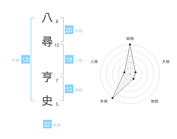 八尋 亨史さんを姓名の画数から五運を鑑定