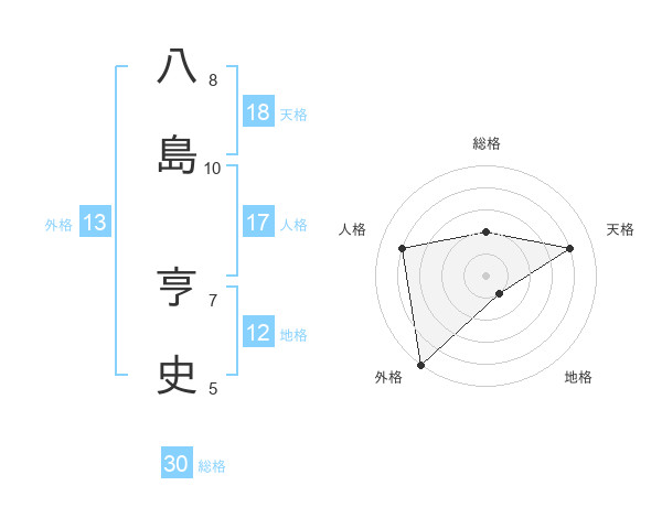 八島 亨史さんの総格は30画の2点!