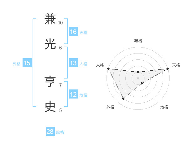 兼光 亨史さんの天格は16画の5点!