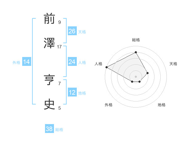 前澤 亨史さんの総格は38画の4点!