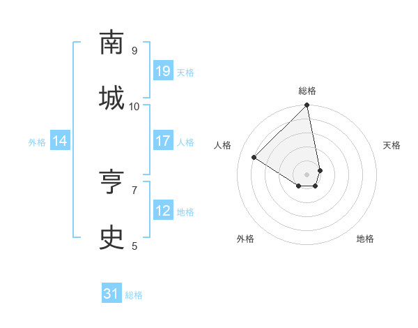 南城 亨史さんの総格は31画の5点!