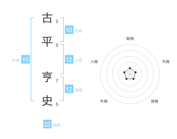 古平 亨史さんの総格は22画の1点!