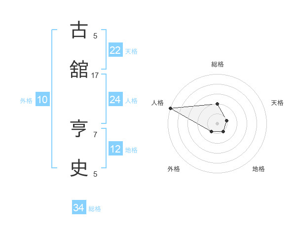 古舘 亨史さんを姓名の画数から五運を鑑定