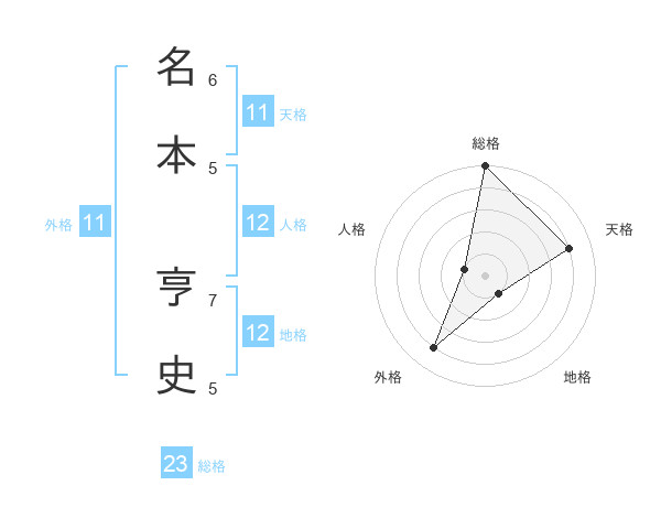 名本 亨史さんの総格は23画の5点!