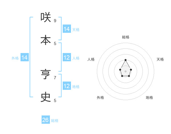 咲本 亨史さんの外格は14画の1点!
