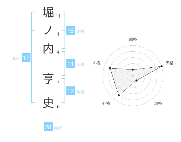 堀ノ内 亨史さんの外格は17画の4点!