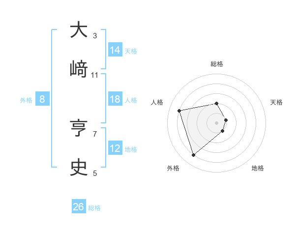 大﨑 亨史さんを姓名の画数から五運を鑑定