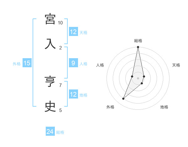 宮入 亨史さんの総格は24画の5点!