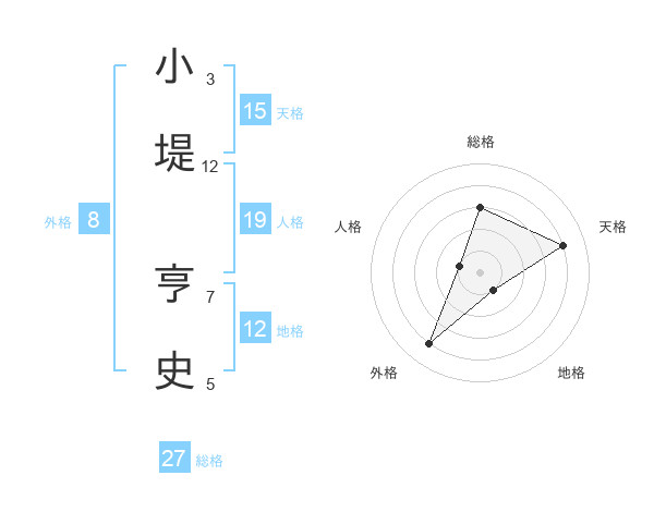 小堤 亨史さんを姓名の画数から五運を鑑定