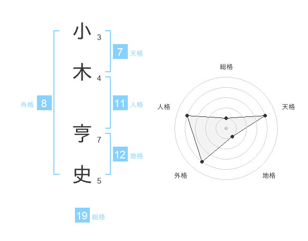 小木 亨史さんの天格は7画の4点!