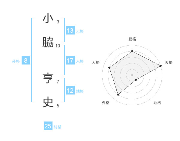 小脇 亨史さんの天格は13画の5点!