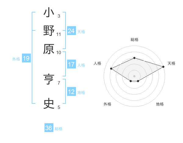 小野原 亨史さんを姓名の画数から五運を鑑定