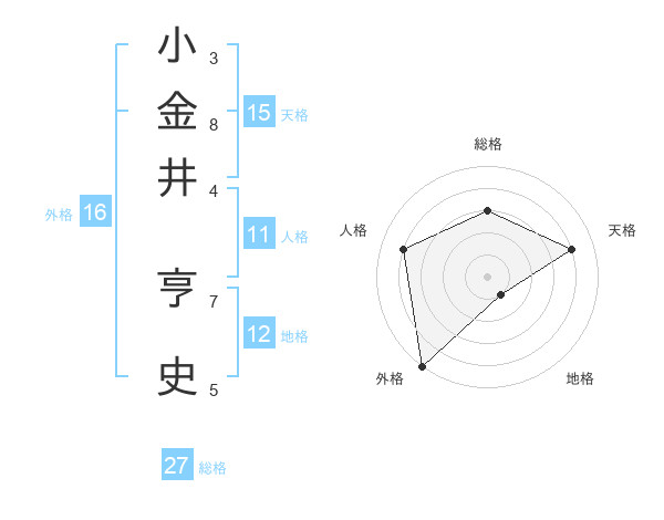 小金井 亨史さんを姓名の画数から五運を鑑定