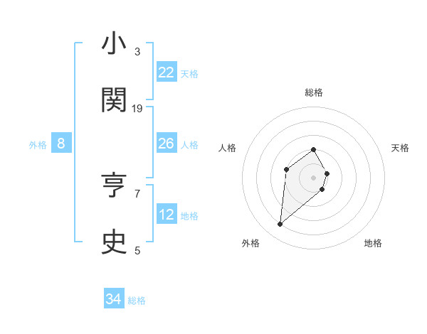小関 亨史さんの総格は34画の2点!