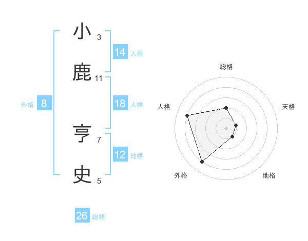 小鹿 亨史さんの総格は26画の2点!