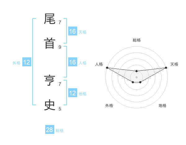 尾首 亨史さんの天格は16画の5点!