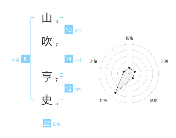 山吹 亨史さんを姓名の画数から五運を鑑定