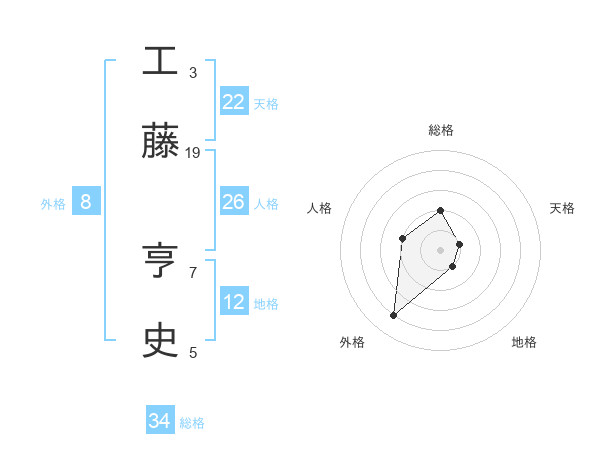 工藤 亨史さんを姓名の画数から五運を鑑定