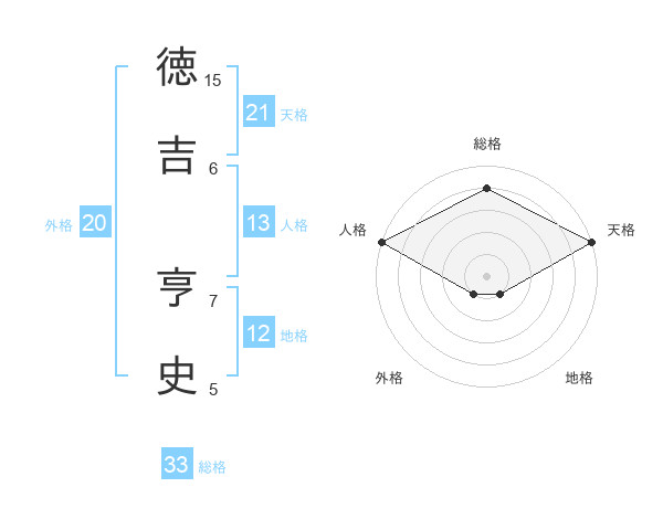 徳吉 亨史さんの天格は21画の5点!