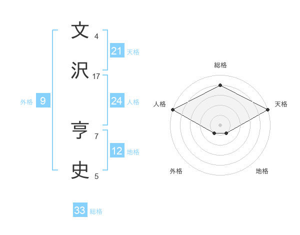 文沢 亨史さんを姓名の画数から五運を鑑定