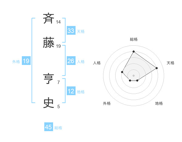斉藤 亨史さんの総格は45画の4点!