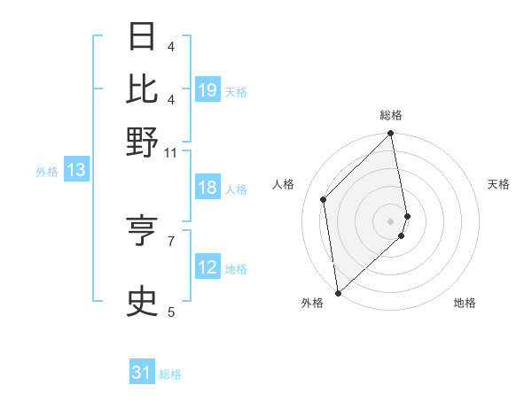 日比野 亨史さんを姓名の画数から五運を鑑定