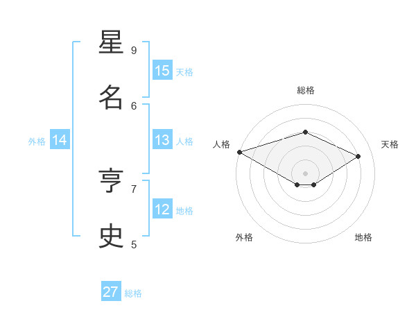 星名 亨史さんの総格は27画の3点!
