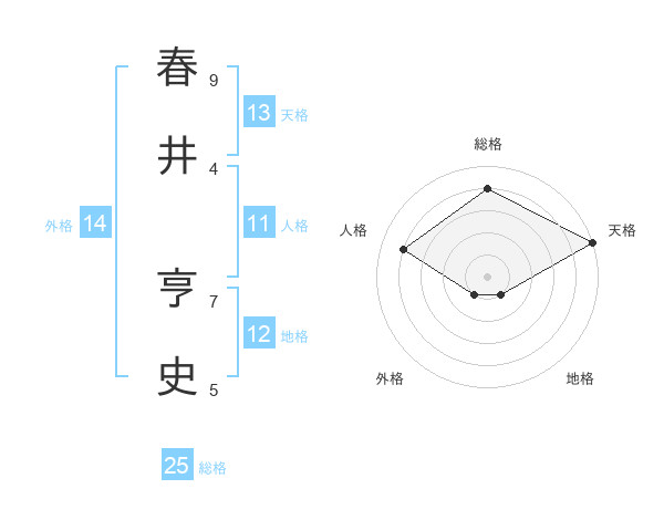 春井 亨史さんの天格は13画の5点!
