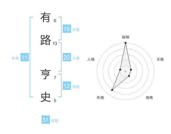 有路 亨史さんの総格は31画の5点!