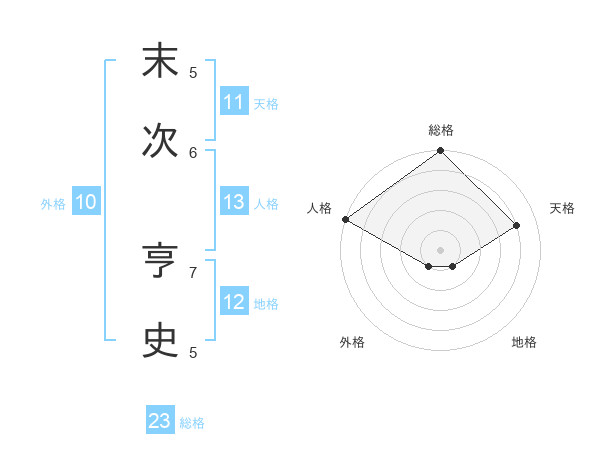 末次 亨史さんの総格は23画の5点!