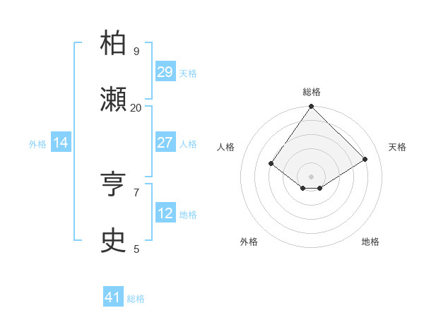 柏瀬 亨史さんの総格は41画の5点!