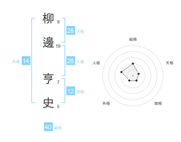 柳邊 亨史さんの総格は40画の2点!