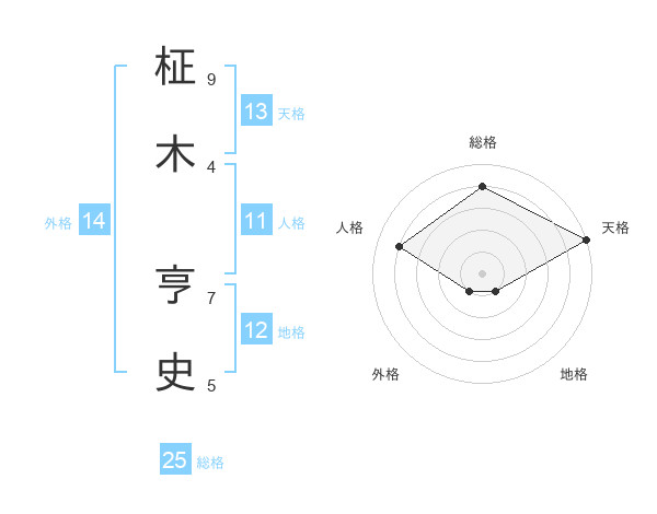 柾木 亨史さんの総格は25画の4点!