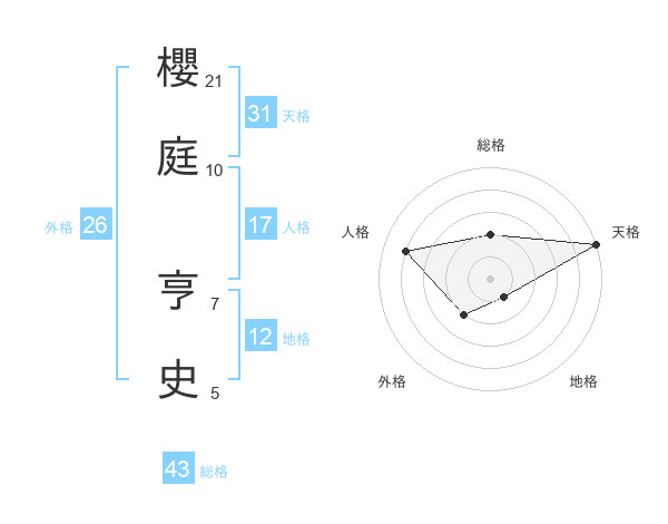 櫻庭 亨史さんの天格は31画の5点!