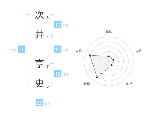 次井 亨史さんの総格は22画の1点!