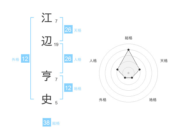 江辺 亨史さんを姓名の画数から五運を鑑定