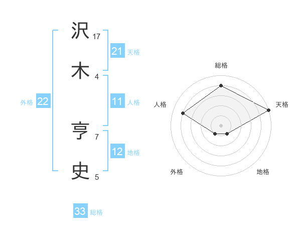 沢木 亨史さんの総格は33画の4点!