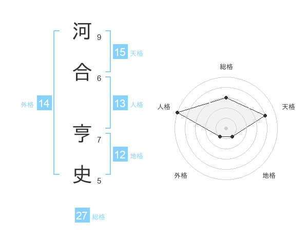 河合 亨史さんの総格は27画の3点!
