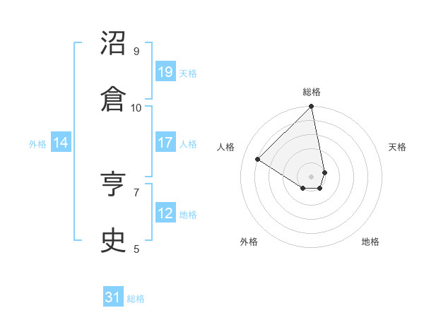 沼倉 亨史さんの総格は31画の5点!