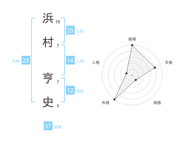 浜村 亨史さんの総格は37画の5点!