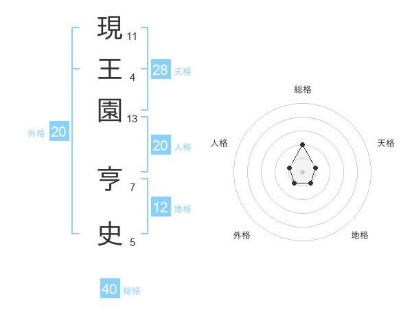 現王園 亨史さんを姓名の画数から五運を鑑定