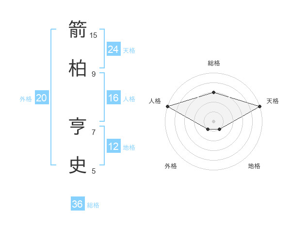箭柏 亨史さんの天格は24画の5点!
