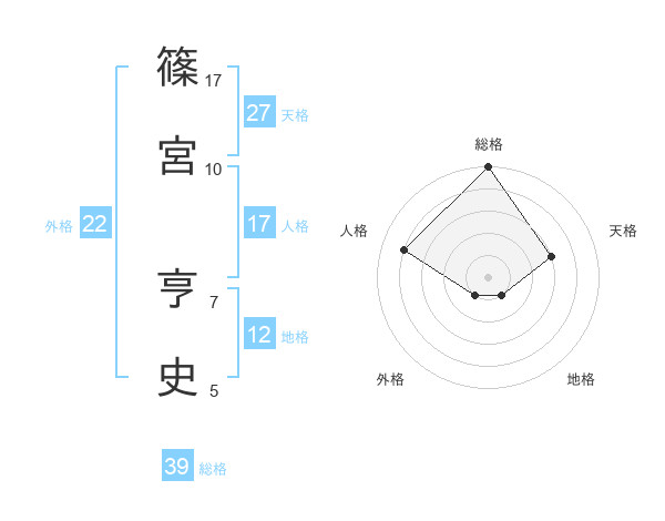 篠宮 亨史さんの総格は39画の5点!