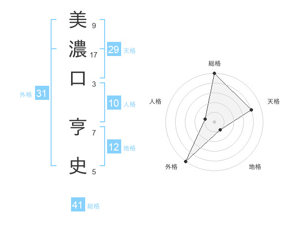 美濃口 亨史さんを姓名の画数から五運を鑑定