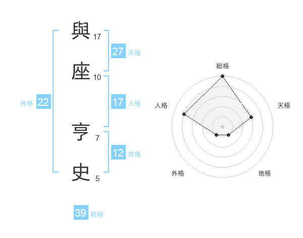 與座 亨史さんの総格は39画の5点!