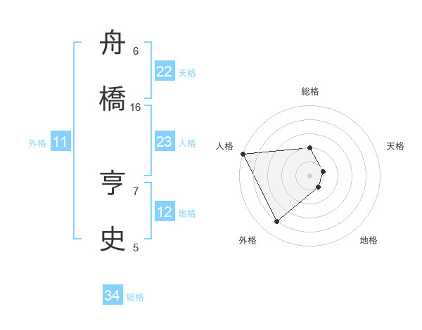 舟橋 亨史さんを姓名の画数から五運を鑑定
