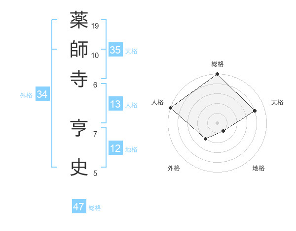薬師寺 亨史さんを姓名の画数から五運を鑑定