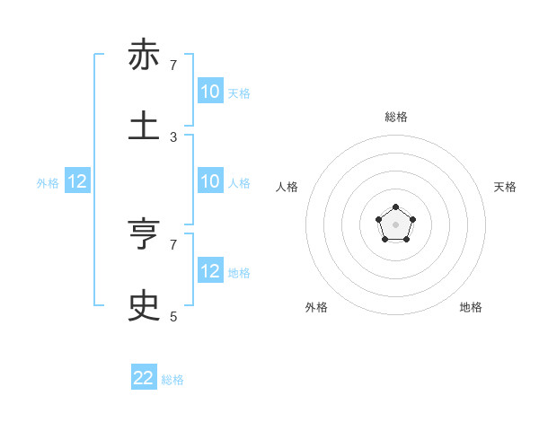 赤土 亨史さんの総格は22画の1点!