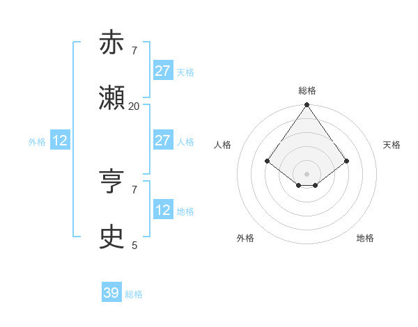 赤瀬 亨史さんを姓名の画数から五運を鑑定