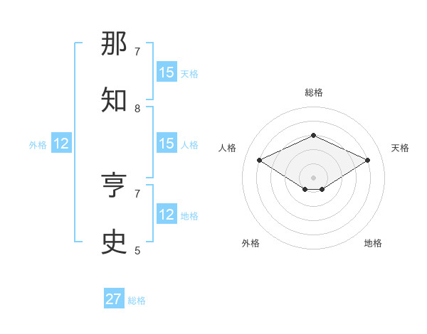 那知 亨史さんの天格は15画の4点!